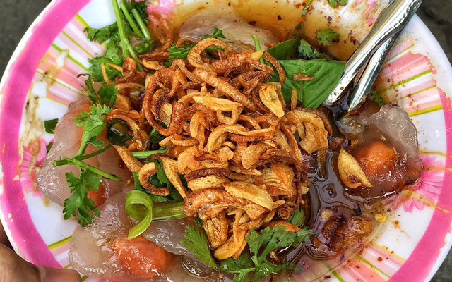 Món bánh bèo được làm hoàn toàn từ bột lọc nên trong hơn so với bánh bèo ở cùng khác, kết hợp với thịt tôm và hành mỡ phi lên, rưới một chút nước mắm cay nồng ăn kèm phải nói là không kìm lòng được, ăn một miếng là nhớ cả đời.